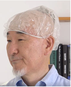 ケーブルを抜き、濡れないようにシャワーキャップをすっぽりかぶります